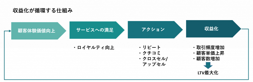 最近のBtoCやDtoCビジネスでは「収益の最大化」を「LTV(Life Time Value:顧客生涯価値)の最大化」として、重要指標のひとつと位置づける企業が増えています。